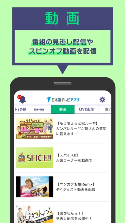 ※このアプリにおいて提供しているサービスは日本海テレビジョン放送株式会社が独自で実施しております。