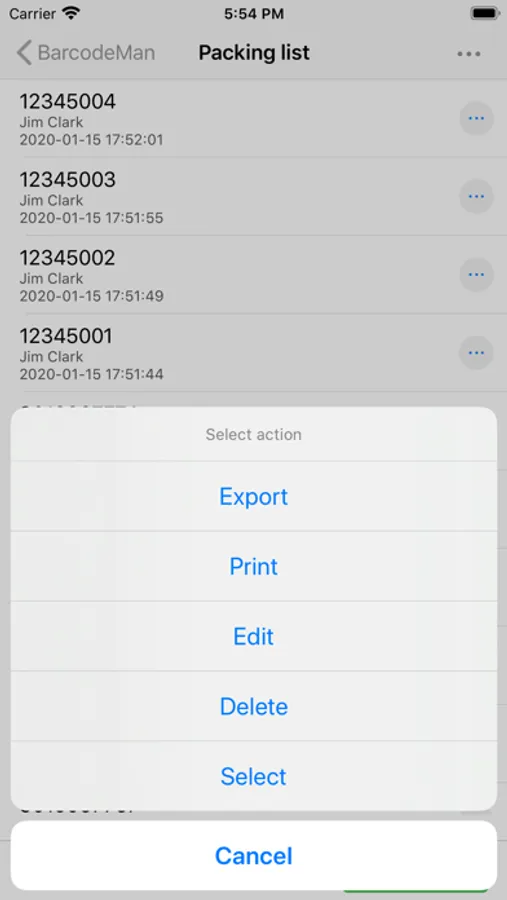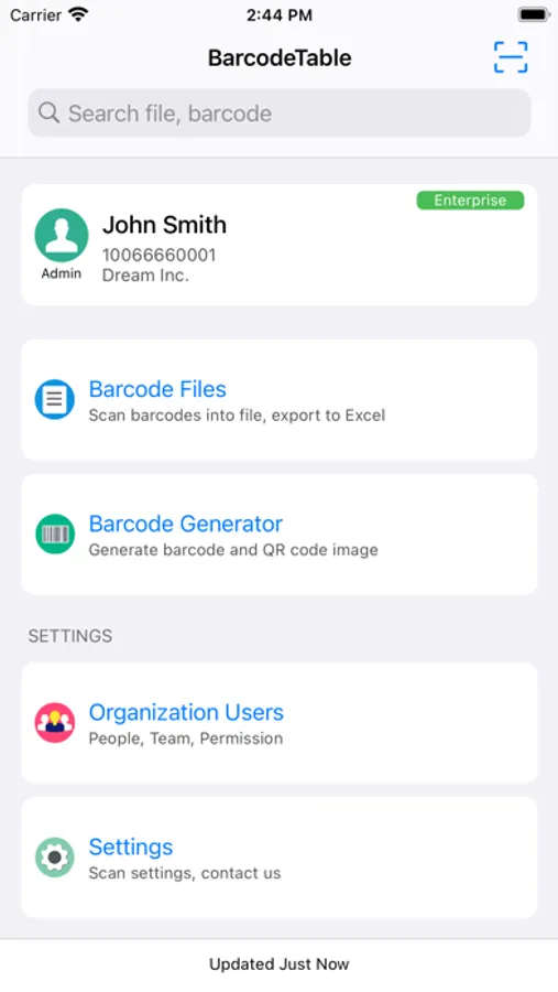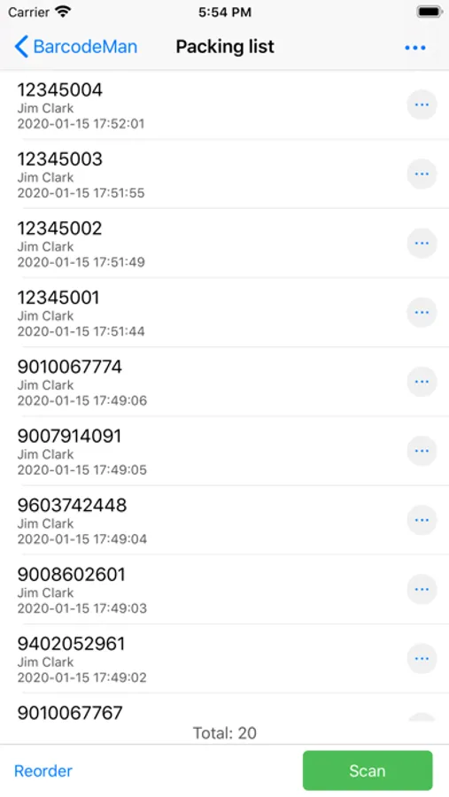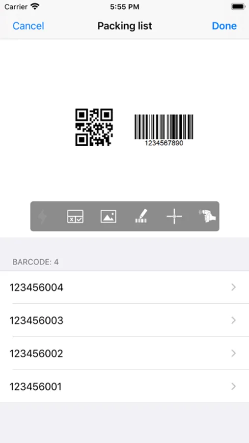 * Barcode Files: Barcodes are scanned into files. You can define custom fields of the file to save different information of barcodes. It is like an Excel spreadsheet and can be exported or shared.