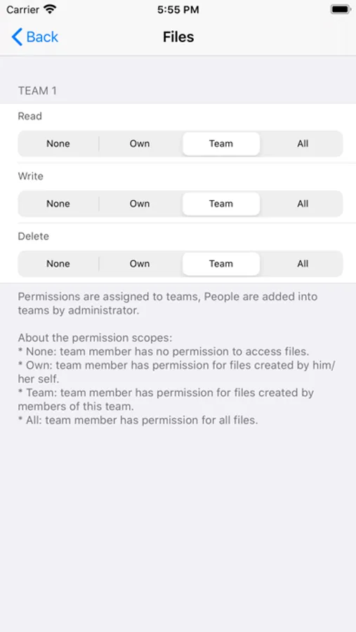 * Team collaboration and permissions: People are assigned to different teams, each team has specified permission settings.