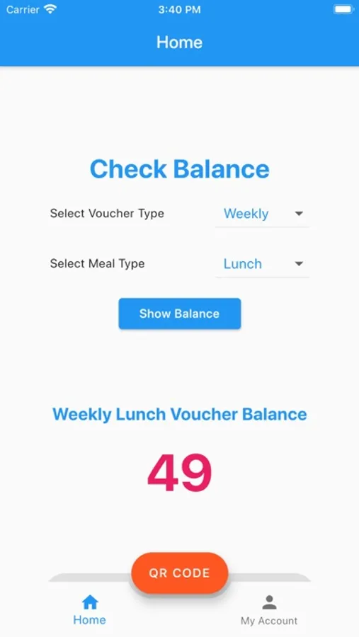 This Canteen App is used for checking balance of Voucher of Canteen meal and showing QR-Code at merchant.