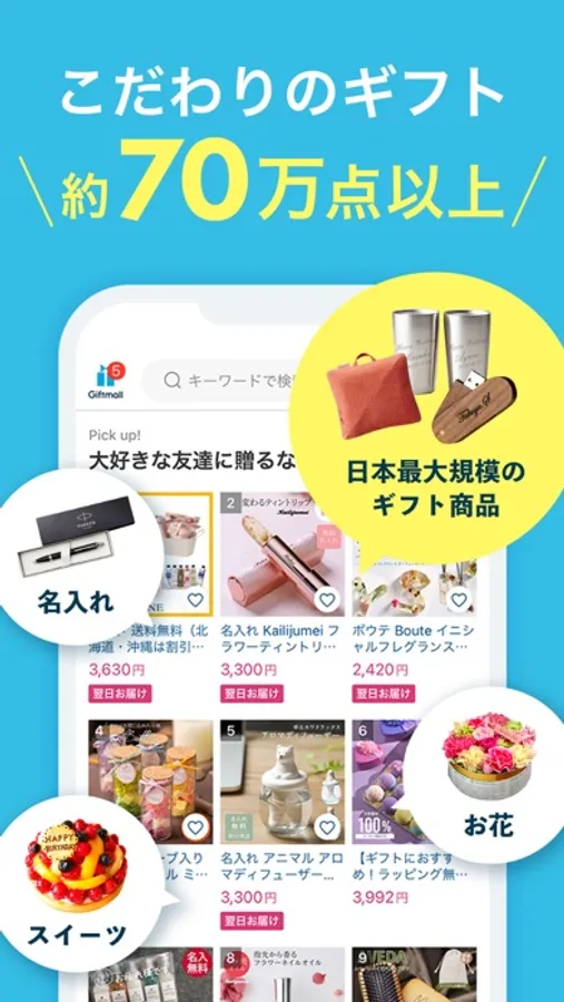 Giftmallでは最高のギフトに出会えます。ギフト選びから名入れ、ラッピング、ギフトの購入まで任せてください。大切な人との記念日やご家族・友人の誕生日など、ギフト選びはぜひギフトモールをご活用ください。