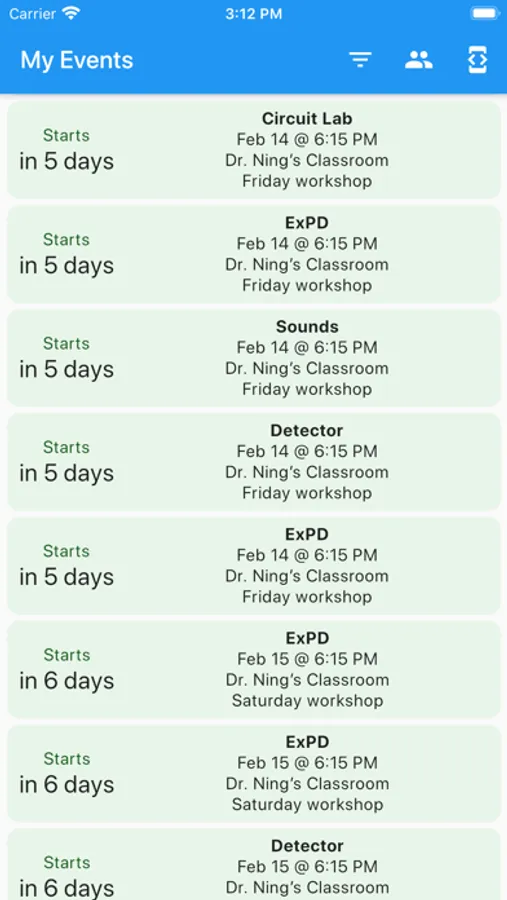 SciOly Schedule Screenshots