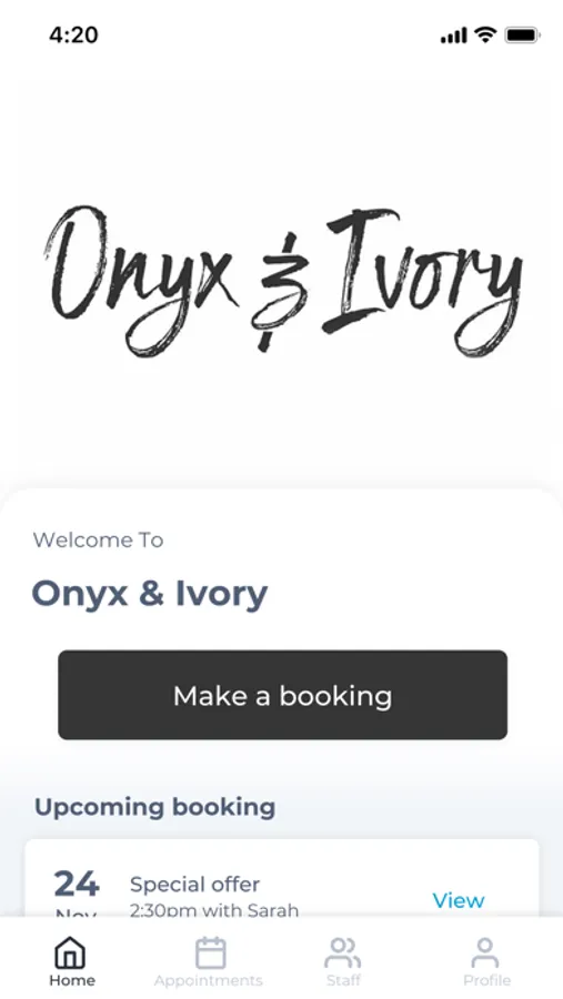 The Onyx & Ivory app makes booking your appointments and managing your loyalty points even easier. You're just a few taps away from feeling good and looking great!