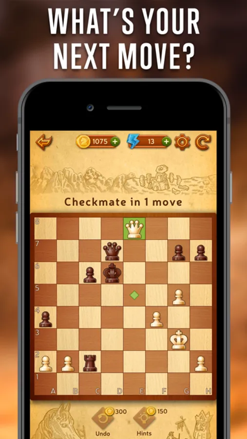 When you don't want to play a full game or multiplayer chess mode, solve chess puzzles. Move to a distant land, earn gold by moving with the chess Knight and explore further levels with hundreds of puzzles. Each square on the board contains a chess puzzle you must solve to move on. Chess puzzles are quick tasks where you checkmate your opponent in a limited number of moves.