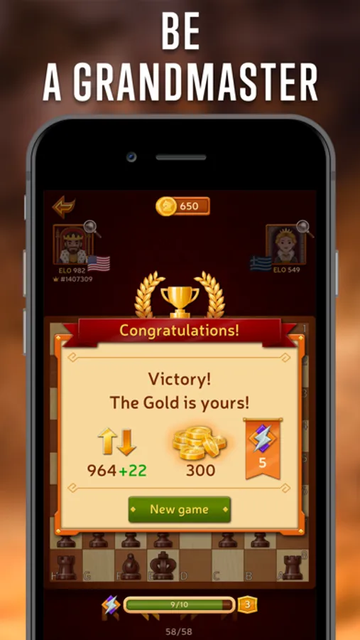 Chess for beginners, for children, or perhaps for a master? Everyone will find a level suitable for their chess skills. Choose from 10 different difficulty levels, train, and check your chess tactics in the multiplayer chess duel.