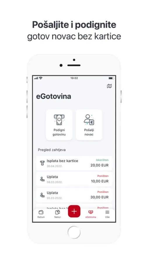 • Kreiranje koda za podizanje gotovog novca bez kartice i slanje novca drugoj osobi