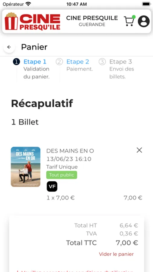 L'application Guérande Ciné Presqu'ile permet de commander des places de cinéma dans le cinéma Ciné Presqu'ile à Guérande