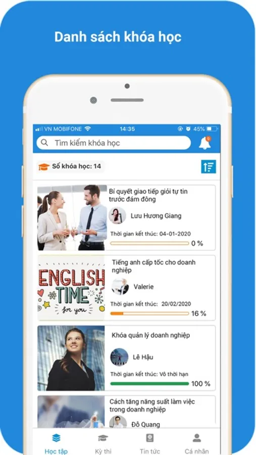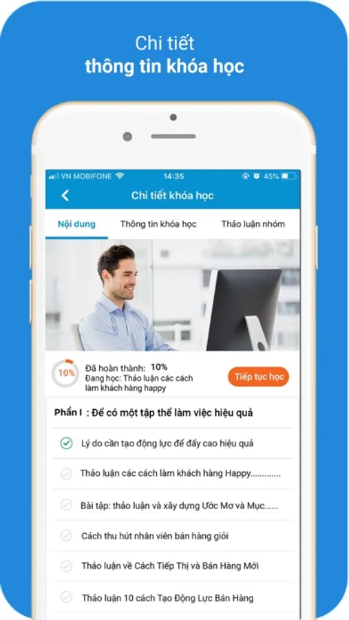 Ứng dụng hỗ trợ bạn cung cấp các khóa học tuyệt vời cho nhân viên, đối tác, khách hàng hoặc sinh viên của bạn một cách dễ dàng.