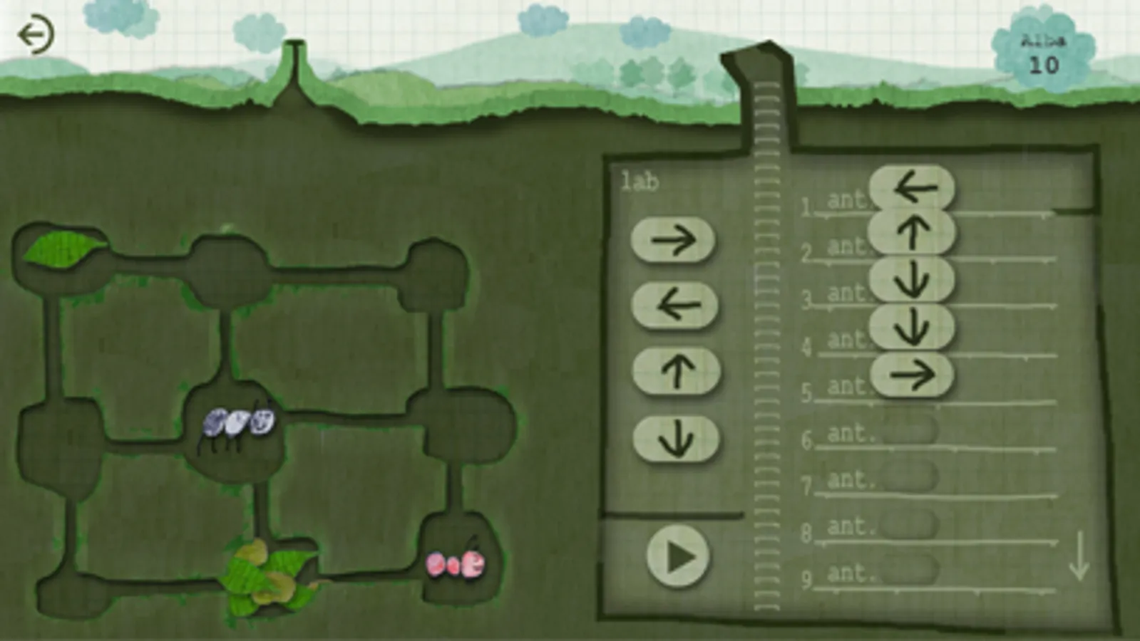 Help de little blue ant to carry the leaves to the pile of leaves avoiding the bad red ant!