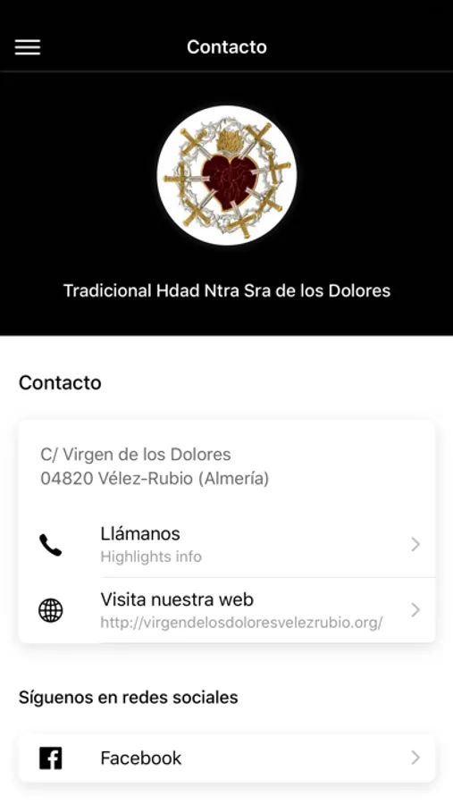 Aplicación Oficial de la Tradicional Hermandad Ntra. Sra. de los Dolores de Vélez Rubio, donde se puede consultar información de la Cofradía, próximas salidas y acceso identificado para los hermanos/as en el que pueden consultar/modificar sus datos personales, consultar recibos y recibir notificaciones de la Cofradía.