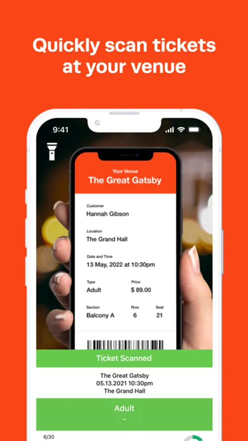 The app uses your device’s built-in flashlight to make it easier to scan in dark areas. It flashes warning colors and plays sounds if there is a problem reading the ticket, such as if the ticket isn’t valid or has already been scanned.