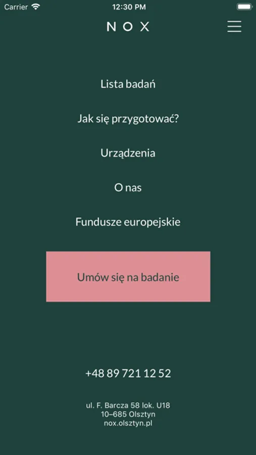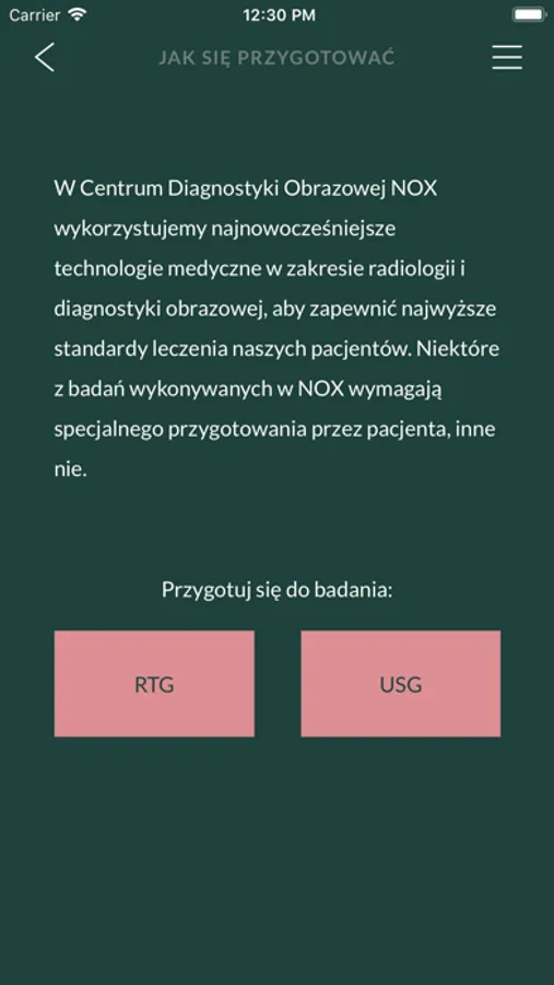 Aplikacja mobilna Centrum Diagnostyki Obrazowej NOX umożliwia: przegląd oferty Centrum, zapisy online, zapoznanie się z procedurą przygotowania do badania oraz automatyczny kontakt z Centrum w razie zwolnienia się terminów.