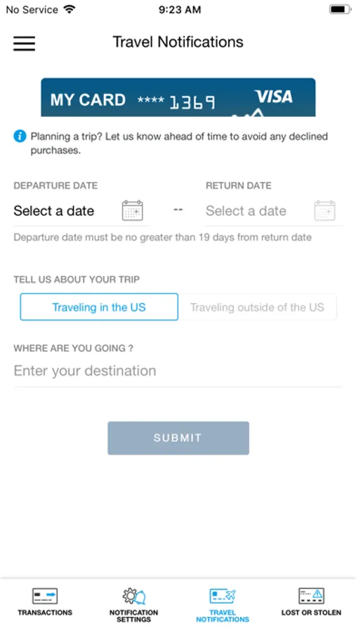 * Set travel notifications.