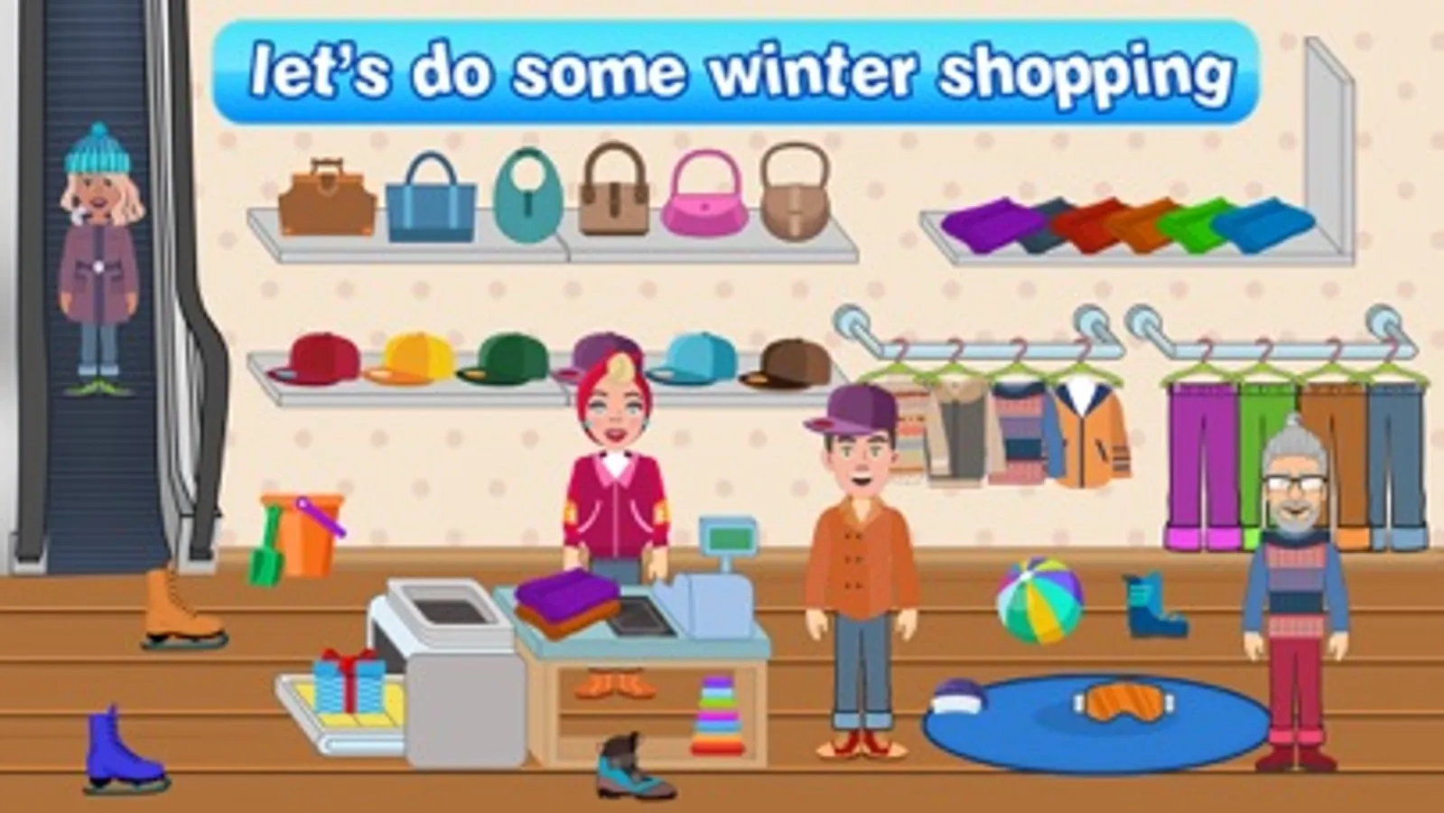 Pretend Play Winter Vacation gives you the opportunity to pretend play awesome holiday stories with your friends. Visit the town house & make snowman in the cold snow. Dress up your cute friends with caps, jackets and mufflers which you bought from super city shopping mall. Pretend Play Winter Vacation will let you lose your stress being with the family at the hilly mountain areas. Throw snowballs at each other, make igloo house & open surprise presents given from family.