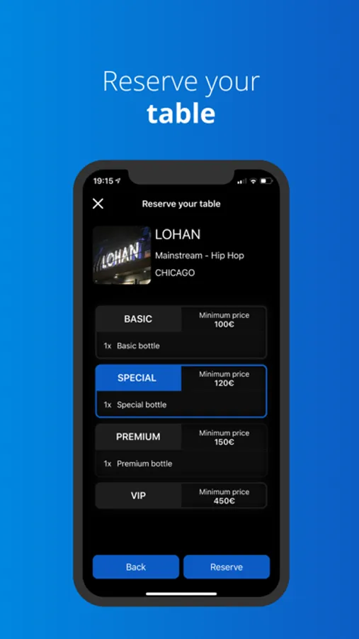 Avoid wasting time, use the app to find live price rates and book a table at any event in your city.