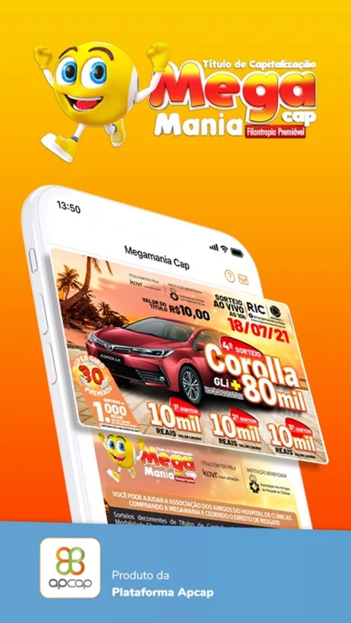 O MEGAMANIA CAP é um Título de Capitalização de Pagamento Único, da Modalidade Filantropia Premiável, com atuação no Paraná, aprovados pela SUSEP e emitidos pela Kovr Capitalização (CNPJ nº 93.202.448/0001-79). Além de proporcionar o direito de participação em sorteios ao subscritor, com o MEGAMANIA CAP você pode contribuir para o desenvolvimento e custeio da ASSOCIAÇÃO DOS AMIGOS DO HOSPITAL DE CLÍNICAS, através da cessão do direito de resgate do seu Título, gerando recursos que serão investidos na prestação de serviços de assistência à saúde com a finalidade de prestar assistência médica e hospitalar nas diversas atividades da instituição. Conheça mais sobre o trabalho e os projetos da ASSOCIAÇÃO DOS AMIGOS DO HOSPITAL DE CLÍNICAS no site: www.amigosdohc.org.br