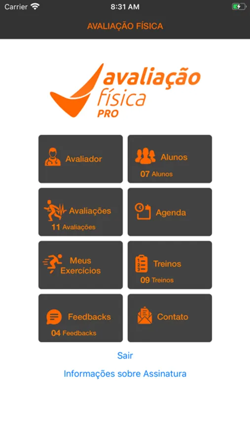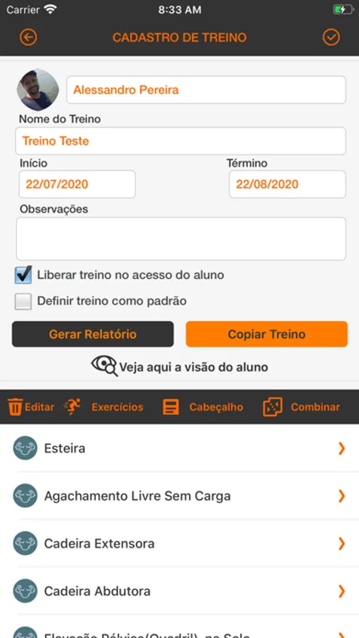 App voltado para profissional de educação física. Neste App é possível realizar as seguinte atividades: