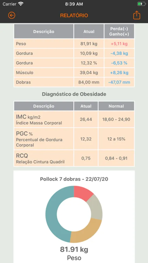 - Comparativo das Avaliações Físicas