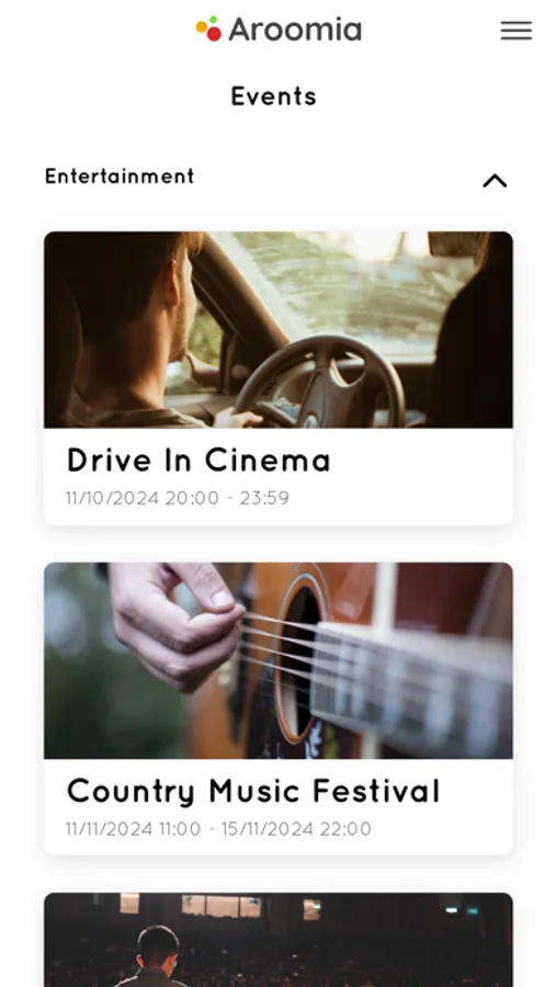 Events - The events section allows you to see current and up-and-coming events in the local area.