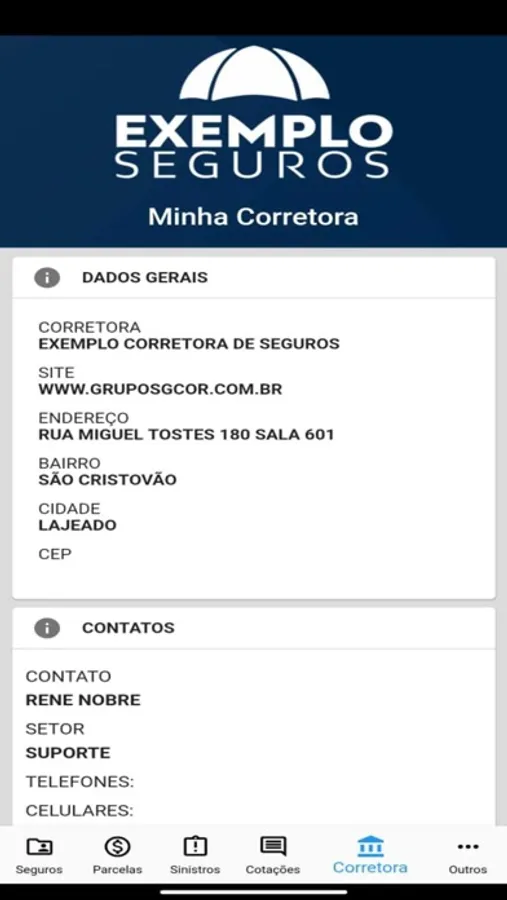 Aplicativo exclusivo para segurados de corretoras clientes do sistema SGCOR.
