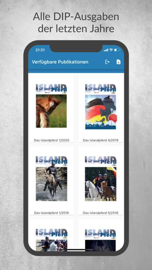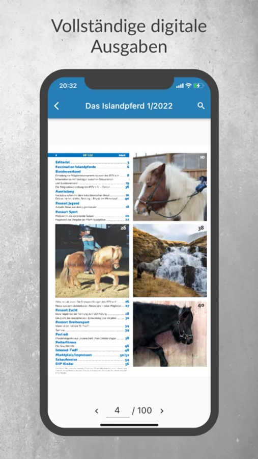 Lesen Sie "Das Islandpferd" und andere Publikationen des IPZV jederzeit bequem auf Ihrem Telefon oder Tablet.