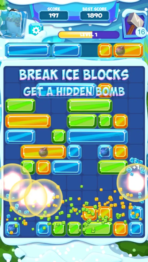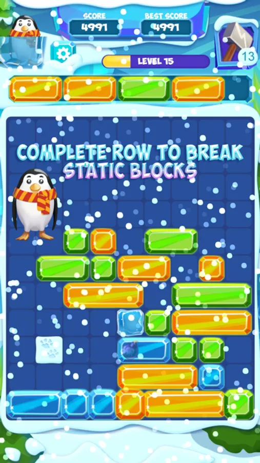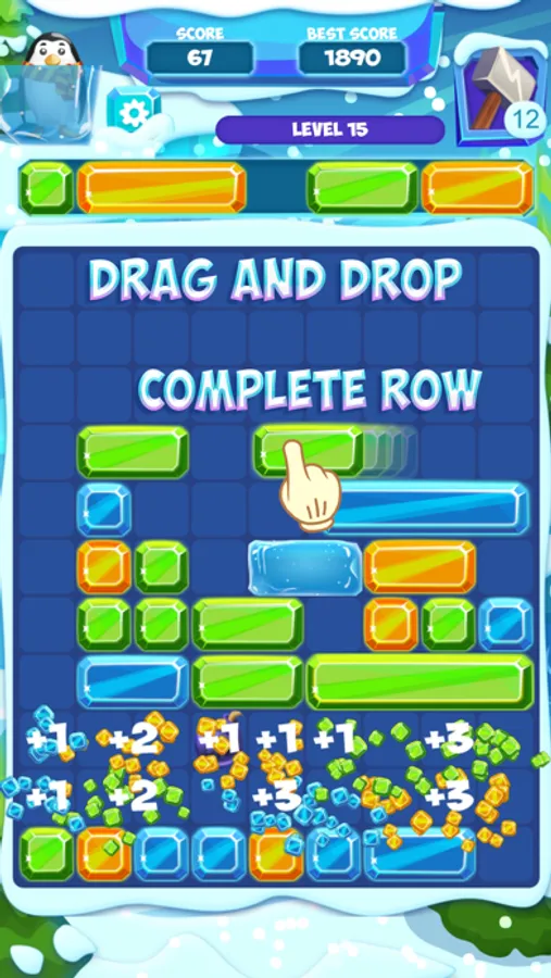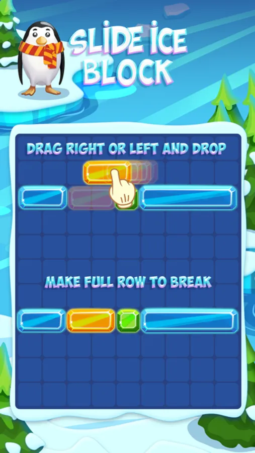 Slide Ice Block is easy to learn and fun to play. Drag blocks right or left and drop them to fill the gaps in the row. Complete the row and clear blocks.