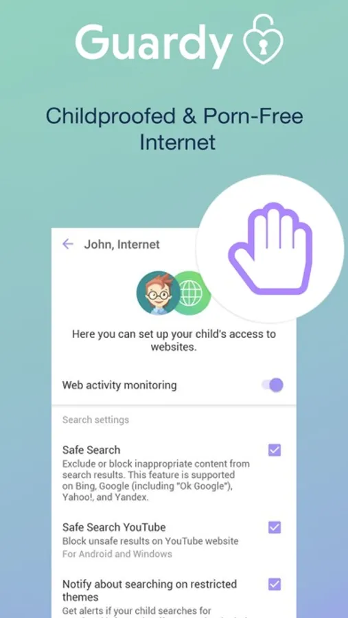 Limit your child's screen time and childproof Internet with Guardy app, a web filter for children's mobile, tablet and computer.
