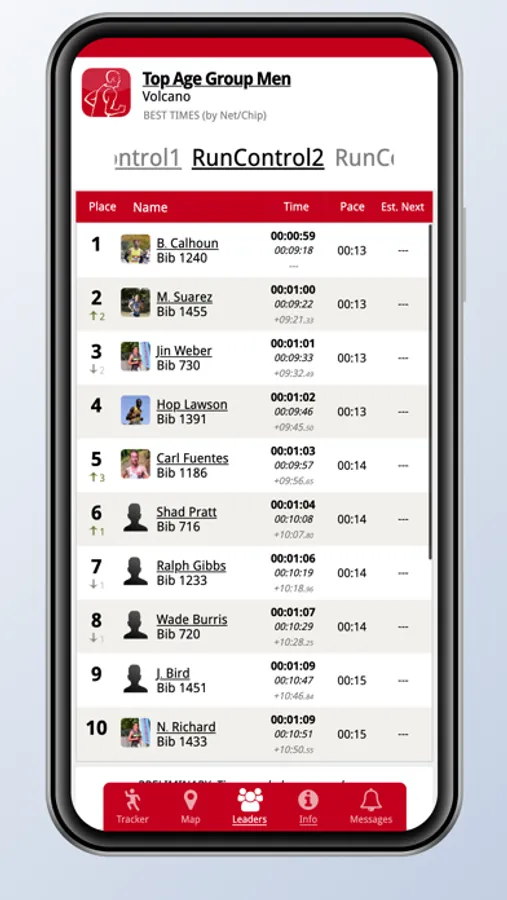 • Participant times, paces, estimates and places in real-time