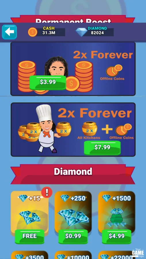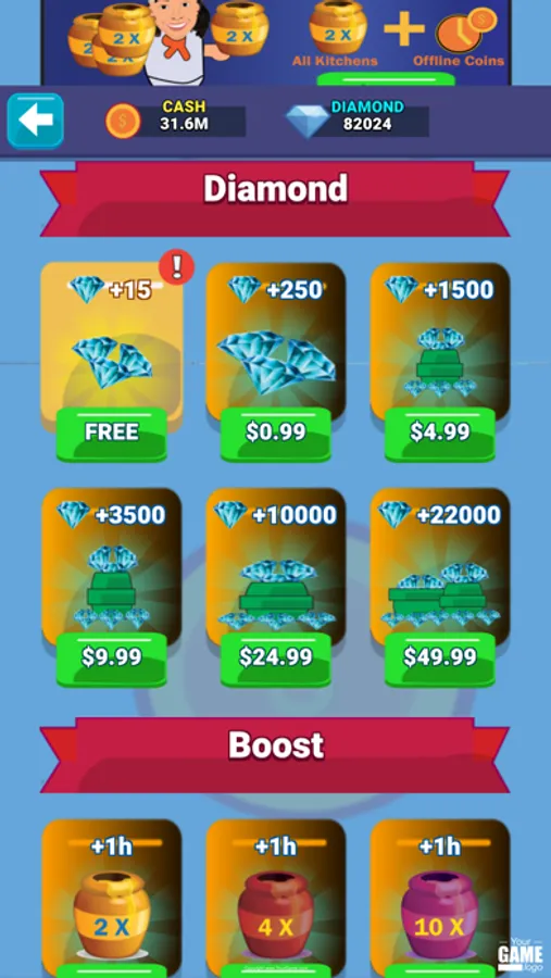 There are more kitchens that needs to be unlocked with Idle Cash $. All you had to do is to unlock more and more kitchens so that you can earn more Idle Cash $. The unlocked kitchen will deliver more Idle Cash $ than the previous one. So be sure to unlock them to boost the Rah's Kitchen game progress.