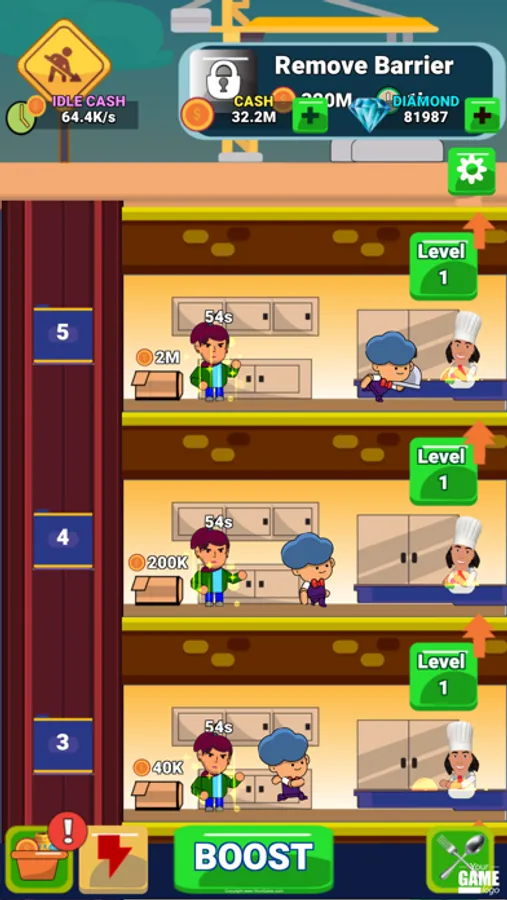All you need to do is to hire the managers and make the kitchen and every section level up in time so you won't lose time and money, the idea of the game is to earn profits and become a Rah's Kitchen master