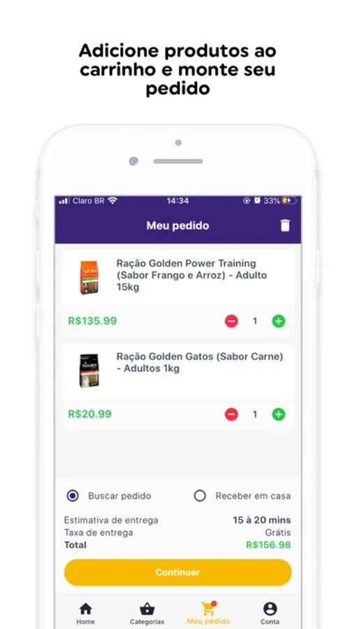 No nosso app você encontra de forma rápida e prática os itens de petshop disponíveis para delivery.