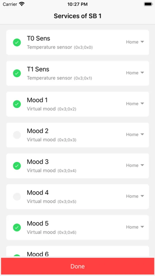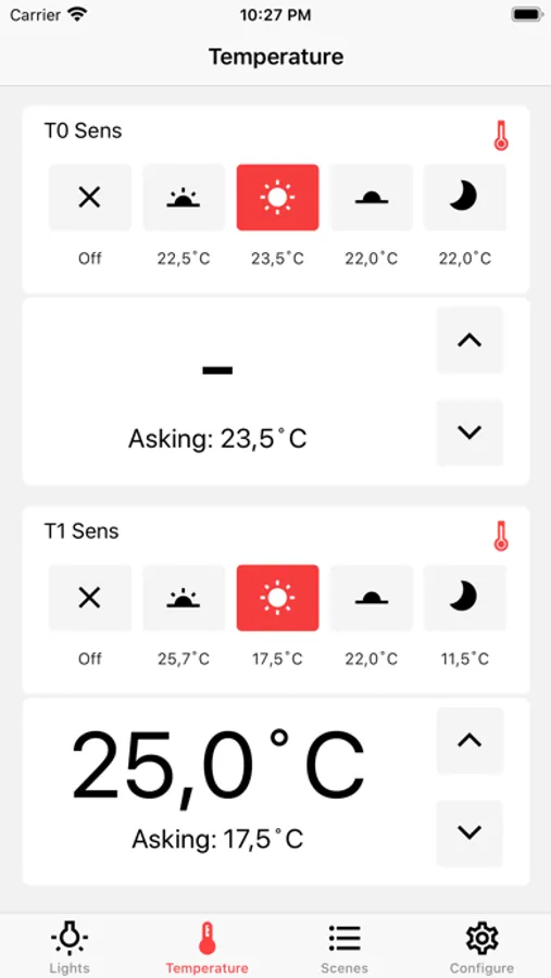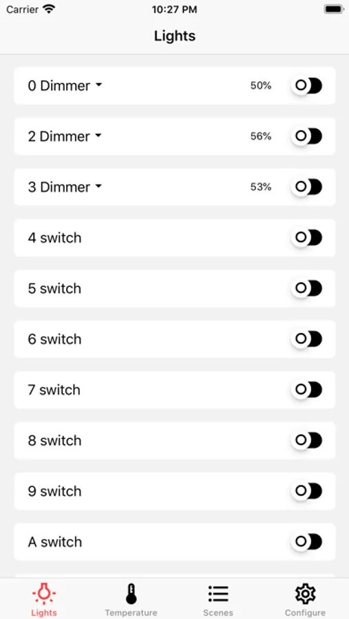 Na het aanmaken van een "master" door het ingeven van het IP adres en een password, krijg je toegang tot alle units in de SmartBox (dimmers, schakelaars, sferen, op/neer motors, verwarming/koeling , drukschakelaars, audio bronnen...).