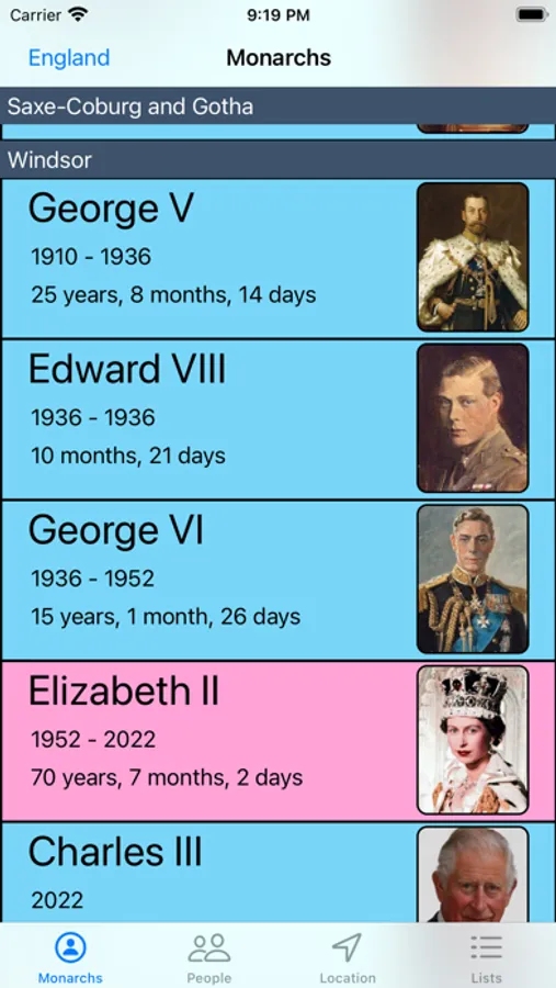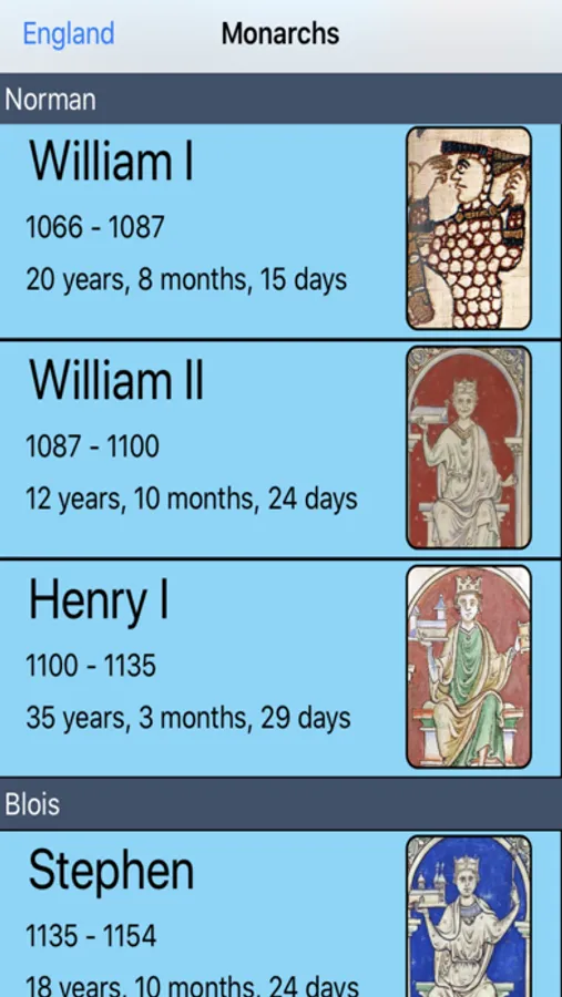 All Kings and Queens Of England and Scotland dating back over 1000 years.