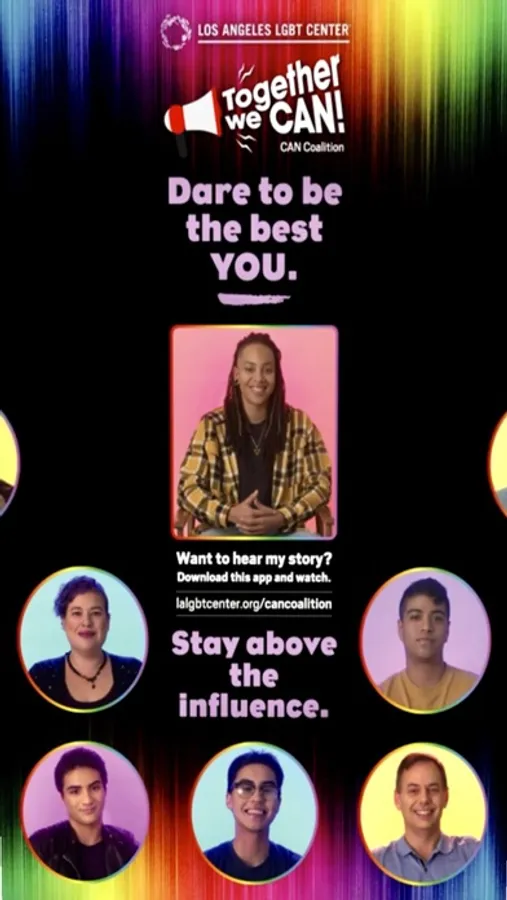 Download the LGBT Center Augmented Reality App to explore the stories of the LGBT Community. Use QR code or Web-Link to download the app from the App Store. After the App is downloaded, open to the home screen and press the "Augmented Reality" button, this will enable the camera. Point the camera at the poster and watch a story "come to life" in Augmented Reality. You can also use the app as an effective way to get to the LGBT Center website or social media channels.