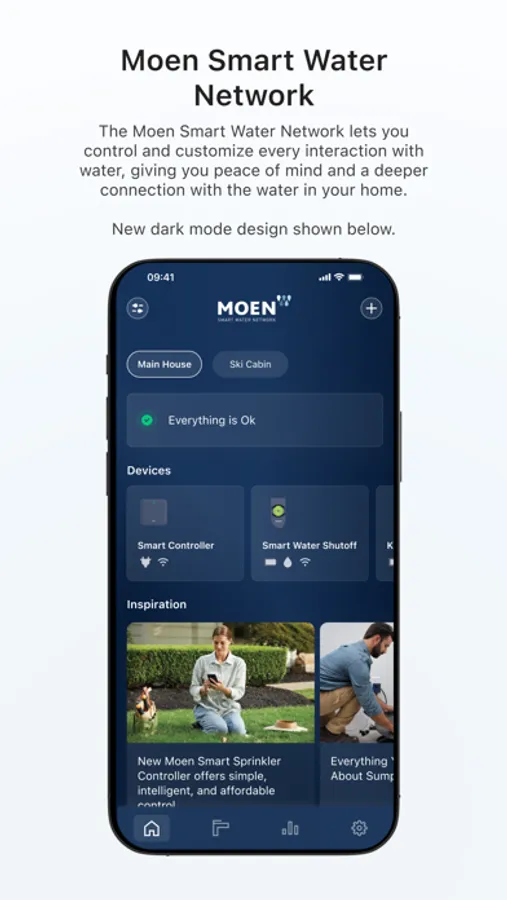 · Control From Anywhere: From the faucets, sprinkler controller and shutoff, you can turn your Moen Smart Water products on and off from anywhere using your phone.