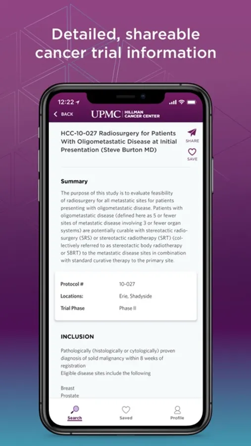 The UPMC Hillman Cancer Trials Finder app helps clinicians, patients, and their families: