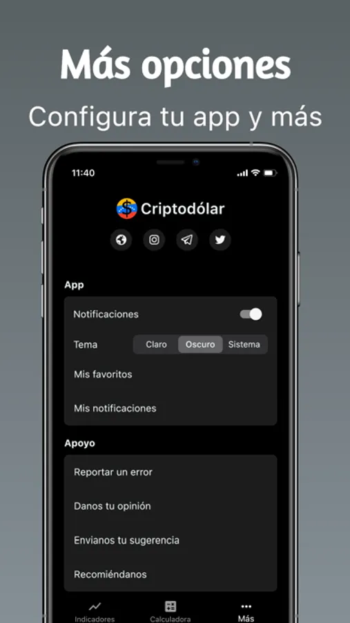 - Gráficas de todas las cotizaciones del dólar y criptomonedas.