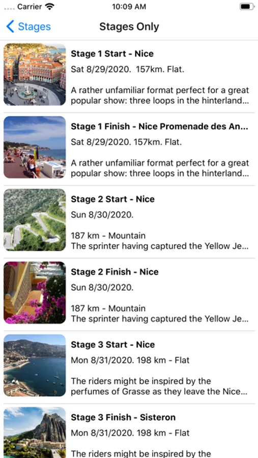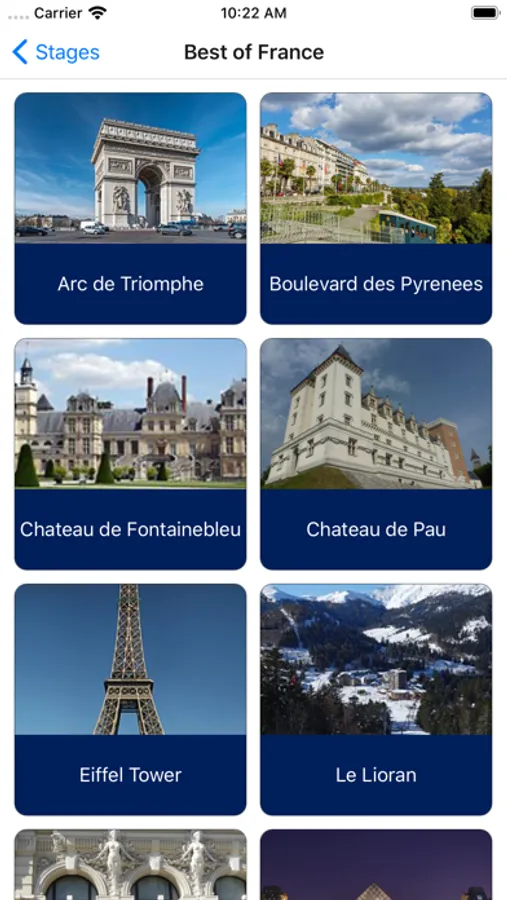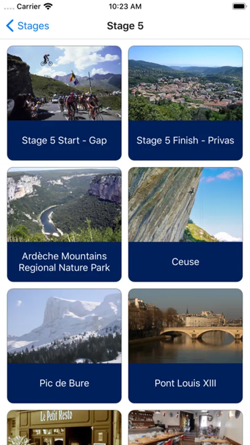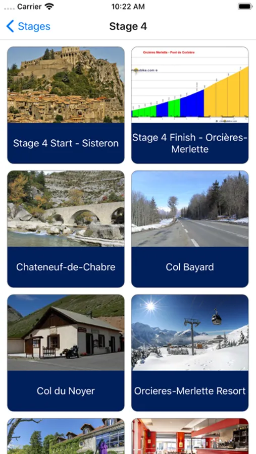 The application shows the user the location of each of the 21 stages, and has a description of each stage. Each stage has its own mini guide to the location.