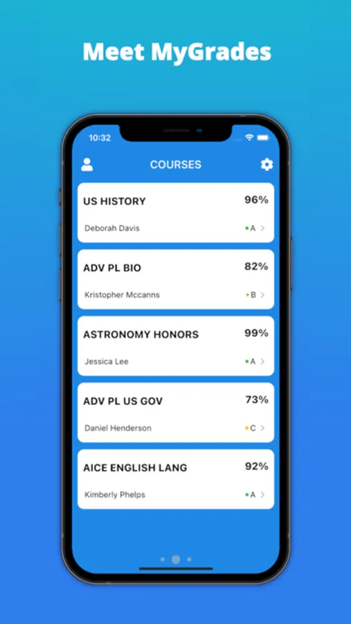 Meet MyGrades, the simplest way to check your school assignment scores. We support over 180 schools in the School District of Palm Beach County. With a multitude of features to make it easy to analyze your scores, MyGrades is sure to keep you on top of your schoolwork.