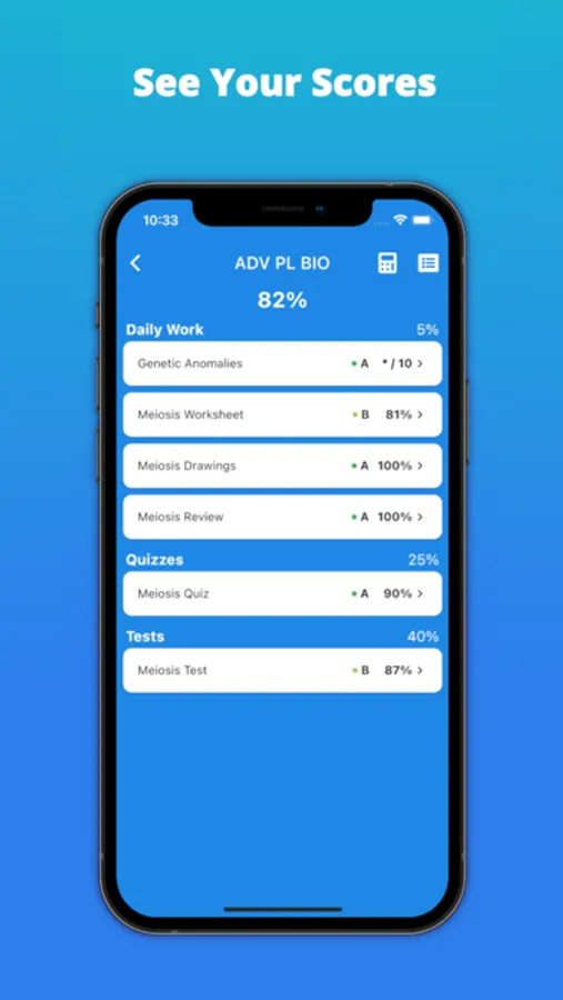 - Spot your scores. Track your progress and see grades seconds after they load on SIS.