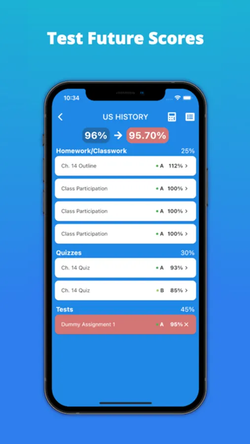 - Grade calculator. Add mock assignments to see the effect of a certain score on your grade.