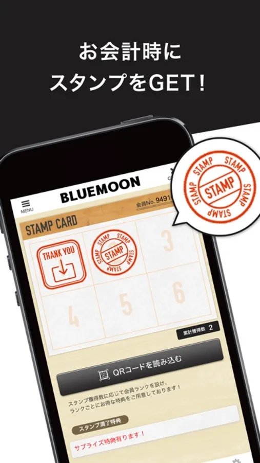 ご来店時に会員証としてご利用いただけるアプリ会員証です。