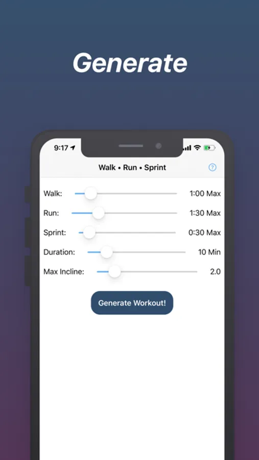 Shake up your running workouts with the Walk Run Sprint (WRS) interval routine generator. Reach your cardio and running goals with ease. Randomly generate routines by selecting duration and interval. Start your workout and follow along with Walk, Run, Sprint intervals.