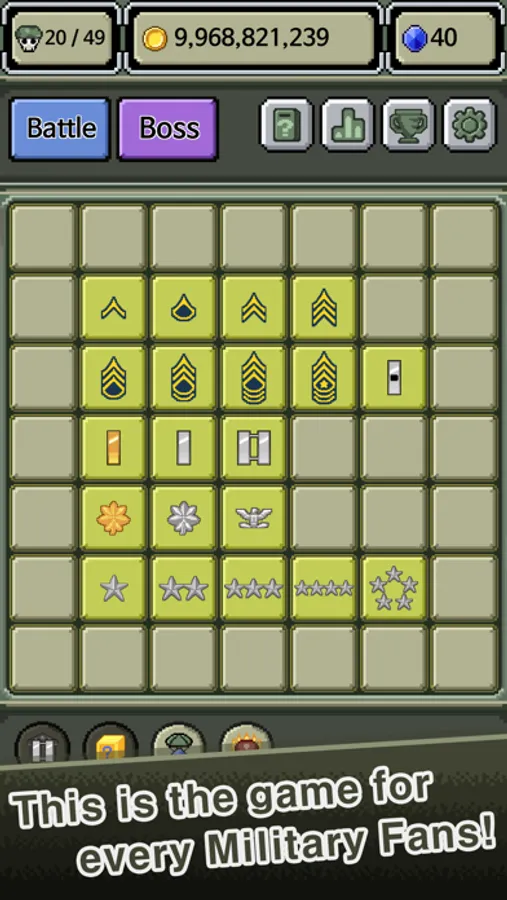 - Feel the growth of the rank insignias through the evaluation of combat strength