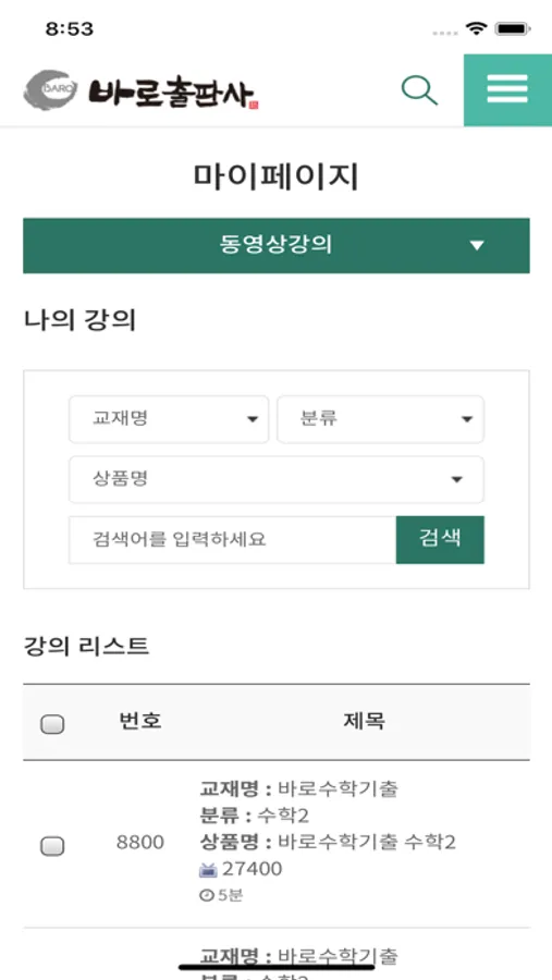 1. 바로출판사 홈페이지 및 앱을 통해 바로수학시리즈(유형편 / 수능편) 서적의 구매 및 회원가입 후 동영상 무료 시청가능합니다.