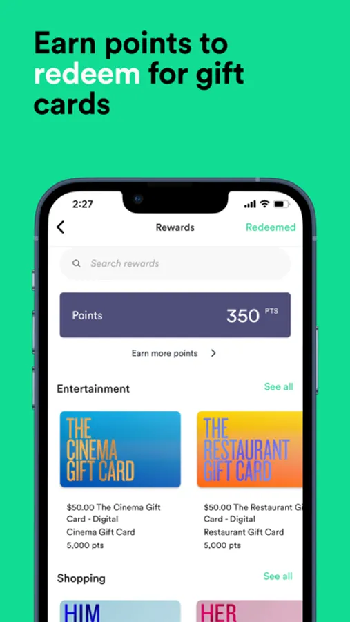 Plus, you get rewarded for using 1bill. The more bills you manage in the app, the more points you earn which can be redeemed for gift cards.