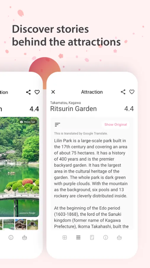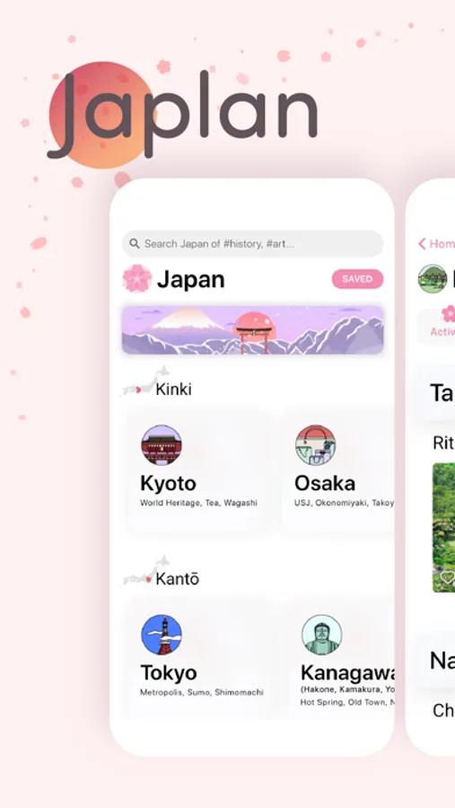 Japlan is a comprehensive Japan travel guide. We recommend destination among 2500 attractions from different prefectures. You can search for suitable attractions specifically thought our 1,000 tags. Japlan will help you to discover the stories behind each attractions. We will suggest tourist products depend on users’ behaviours. For examples, local tours, railway tickets, hotels, seasonal activities etc.