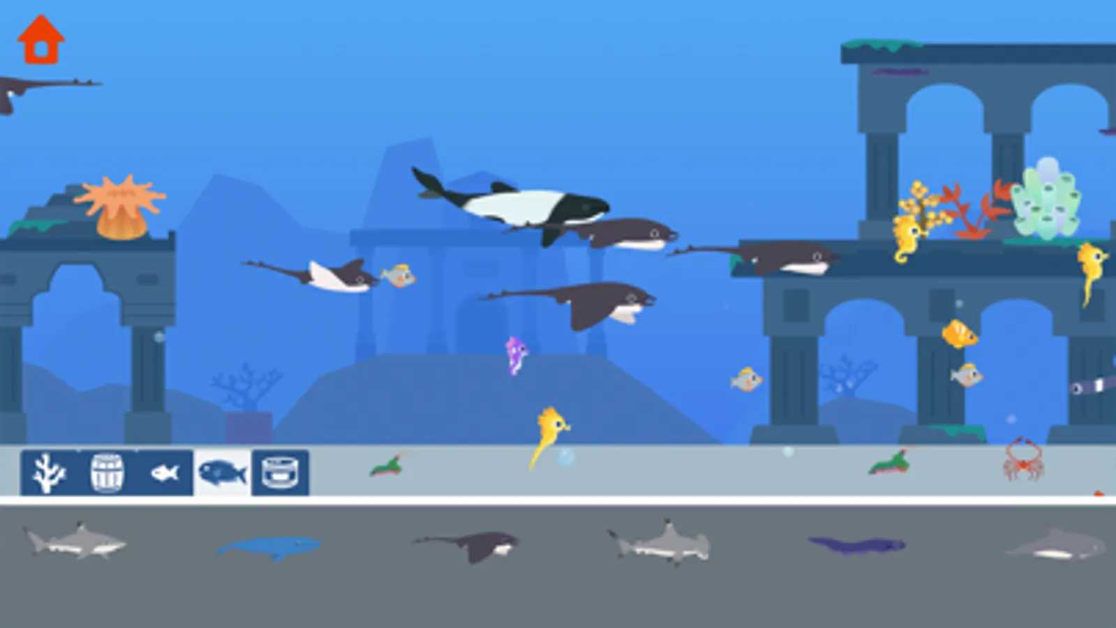 Construct the ideal home for your marine friends! With a sandbox-like environment, position coral, shells, and even treasure chests to perfect each home. In this part of our adventure game, there are no boundaries! Feed and take care of marine life, including whales, dolphins, and manta rays. You'll encounter up to 35 species of marine animals and learn about their diets and their roles as predators or prey.