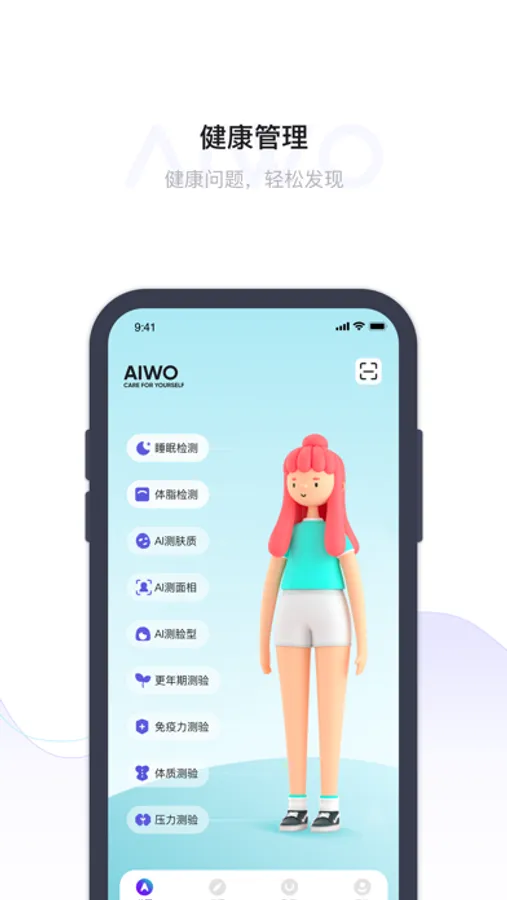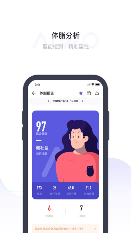 ——健康检测:通过极致的数据呈现用户的自身各项体征指标,通过专业的指标解释引导用户保养瘦身;