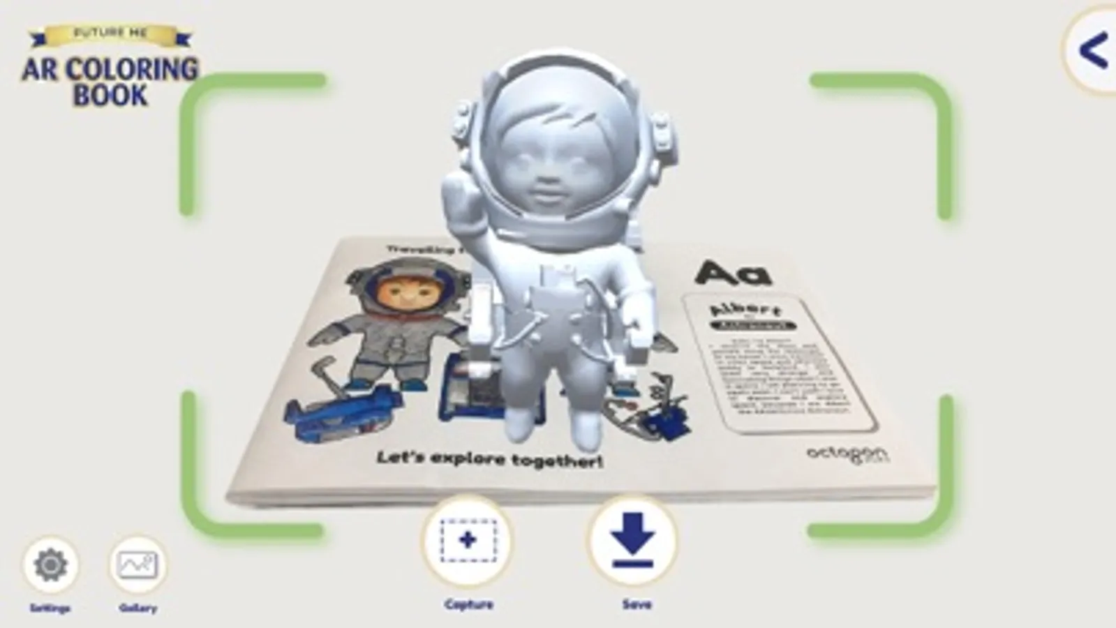 Coloring can help spark creativity in every child. Moreover, this simple and fun activity plays a role in developing a child's cognitive and psychological abilities. With Future Me AR Coloring Book App, children age 3-6 can get a richer experience through its AR experience. Watch the colored characters come to life in 3D with the same colors that they have put on the pages! Future Me AR Coloring Book features an assortment of real life occupations through Octanian characters.